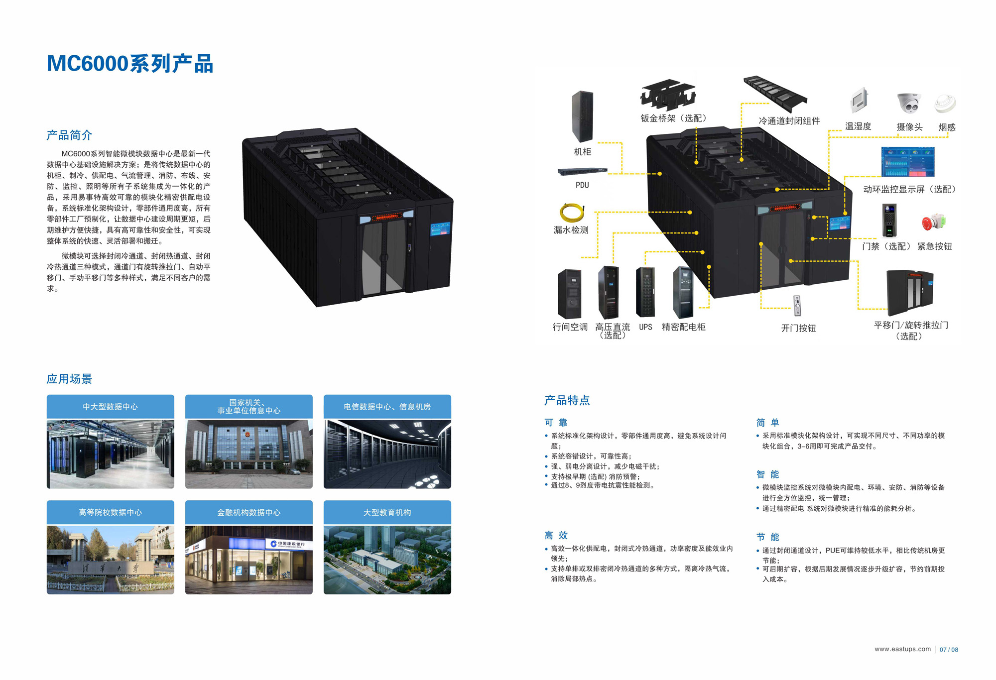 应用于政府、金融、教育、医疗、企业等领域的中型机房。